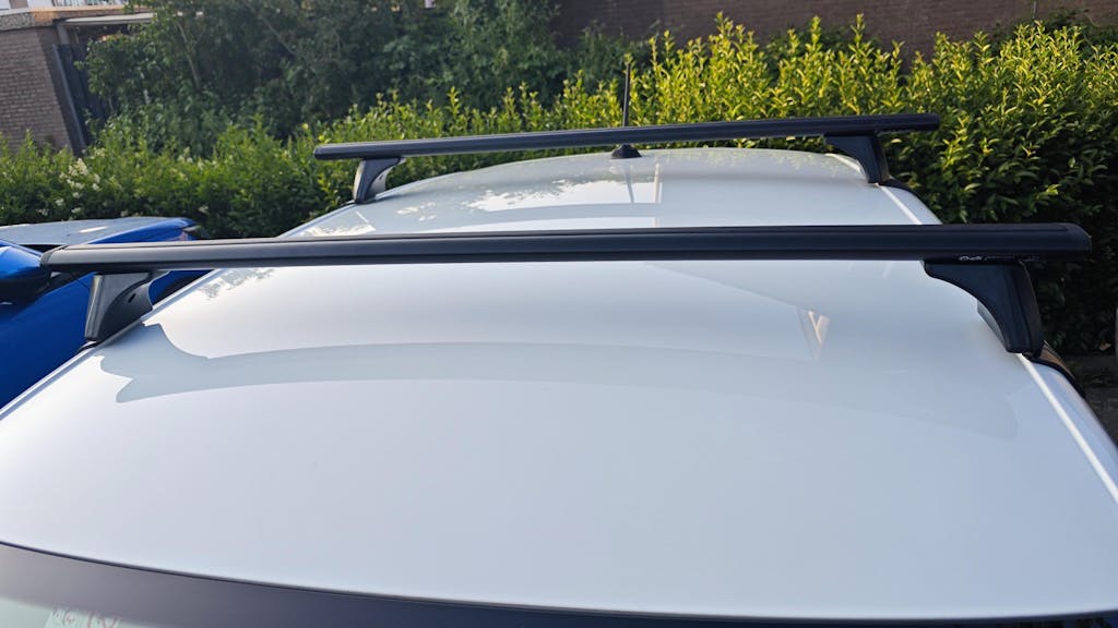 Aan de bovenkant van de stang zit een gleuf die afgedekt is met een rubberen strip. Deze gleuf is geschikt voor het monteren van accessoires zoals fietsendragers en dakkoffers, en heeft dezelfde breedte als die van Thule, Hapro en Atera, waardoor de standaard 20mm T-track adapters perfect passen. Dit maakt het gemakkelijk en veilig om je accessoires mee te nemen. Natuurlijk kun je je accessoires ook monteren met een U-beugel of klauwbevestiging, zolang de U-beugel geschikt is voor een stangbreedte van 80mm.