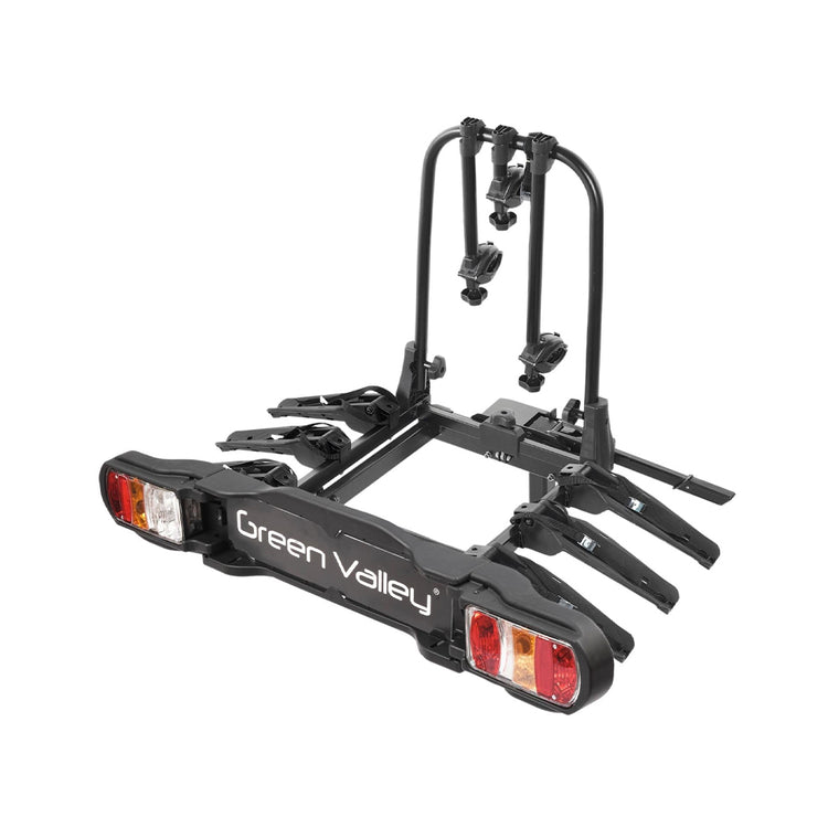 Ontdek nu de Green Valley Discovery 3 fietsendrager. Deze fietsendrager is gemaakt uit staal en voldoet aan de strengste veiligheidsnormen. De fietsendrager kan tot wel drie fietsen dragen met een maximaal draagvermogen van 60kg en per fiets 30kg. De drager is voorzien van een kantelsysteem toegang te krijgen tot de kofferbak, zelfs met fietsen die al geplaatst zijn op de drager. Verder heeft de drager nog een anti diefstal systeem op de koppeling, waardoor je met een gerust hart op reis kan.