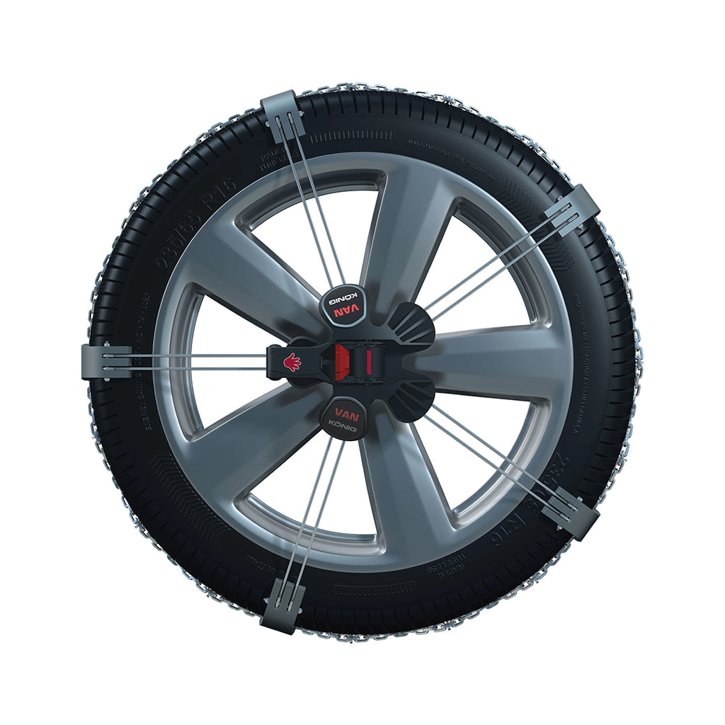 König heeft voor elke bandenmaat sneeuwkettingen. Belangrijk is dat ze niet bevestigd behoeven te worden aan de achterzijde van de band. Daarmee wordt in moderne wielkasten schade aan electrische bedrading en leidingen voorkomen. Dat maakt deze sneeuwkettingen ook zeer geschikt voor moderne SUV's.