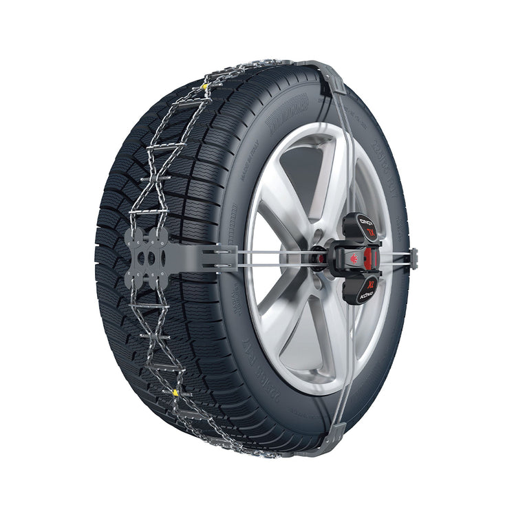 De König K-Summit XL is de loopvlakketting voor zware (elektrische) personenauto's, kleine tot middelgrote SUV's en cross-overs. De loopvlakketting wordt gemonteerd op de orginele moer/bout van het wiel. Het innovatief ratelsysteem zorgt ervoor dat de montage zeer eenvoudig is en met een kleine voormotage snel bevestigbaar. Spanveren van de K-Summit XL verlagen de dynamische krachten en zorgen voor een perfecte pasvorm op de band. Deze loopvlakketting heeft alle ketting op het loopvlak van de band en is aan de achterzijde en voorkant kettingvrij. Hierdoor is deze ketting te gebruiken bij voertuigen die geen traditionele sneeuwketting mogen plaatsen, weinig ruimte in de wielkast en/of overhangende schokbrekers. De K-Summit XL bestaat afwisselend uit gegoten kunstof platen met hardmetalen verbindingsbouten en een gelegeerde stalen ketting.