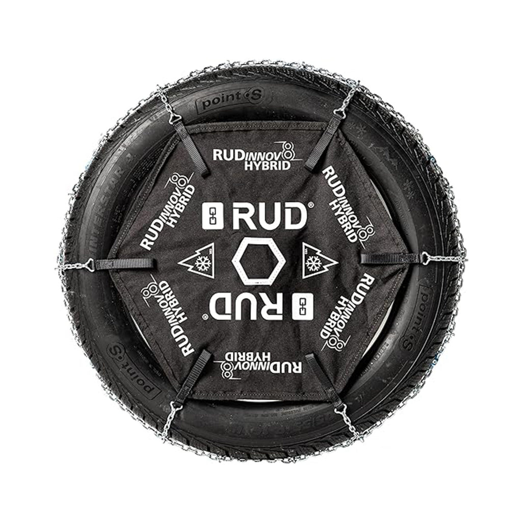 RUD Hybrid Innov8 is een eenvoudig te monteren sneeuwketting en testwinnaar bij de ADAC sneeuwkettingentest. Je hoeft geen ring in te haken achter de band of na te spannen. De RUD Hybrid doet het allemaal zelf en past zichzelf aan de band aan. Je legt de uitermate sterke maar soepele elastische band op de bovenkant achter het wiel, rijdt de auto een klein stukje door en dan leg je de rest van de elastische band achter het wiel en je bent al klaar. Deze sneeuwketting biedt een voortreffelijke grip op ijs en sneeuw en voldoet aan de TUV, GS en O-norm V5117 certificering, noodzakelijk voor de Europese landen. De RUD Hybrid is zowel geschikt voor voor- als achterwiel aangedreven auto’s. Een uitstekende oplossing voor auto’s met beperkte ruimte in de wielkast. Perfecte bescherming van lichtmetalen velgen.