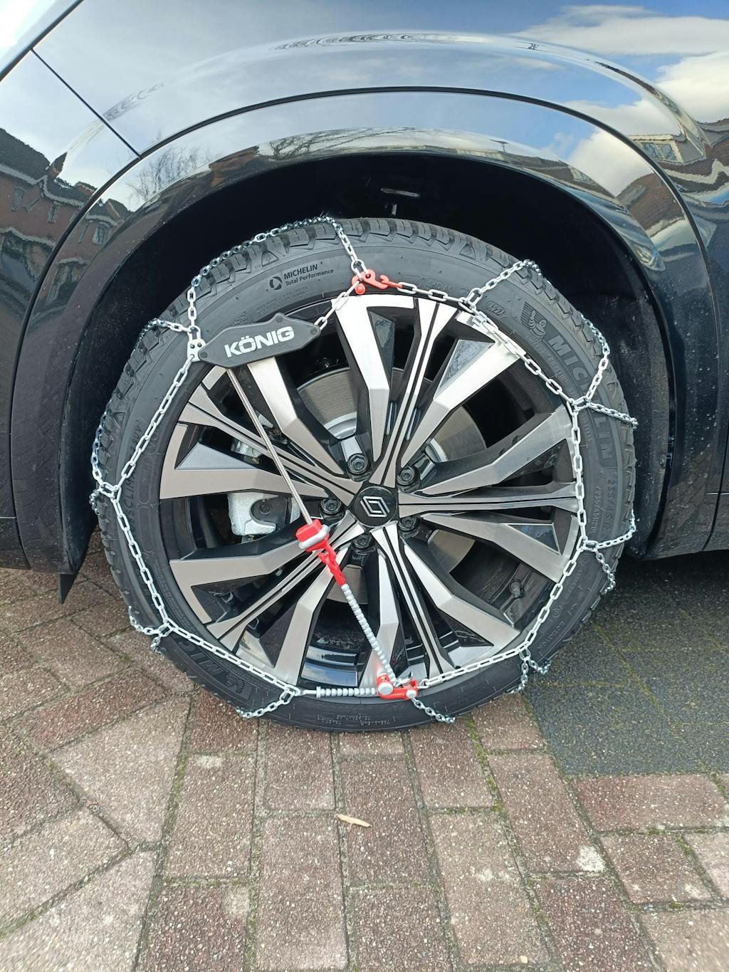 De König XG-Cross 9mm is een hoogwaardige sneeuwketting die speciaal is ontworpen voor SUV's en crossovers met beperkte ruimte in de wielkast. Het zelfspannende systeem maakt montage en demontage eenvoudig, zonder de noodzaak van handmatig naspannen. De ketting biedt goede grip en is een betrouwbare keuze voor winterse omstandigheden.