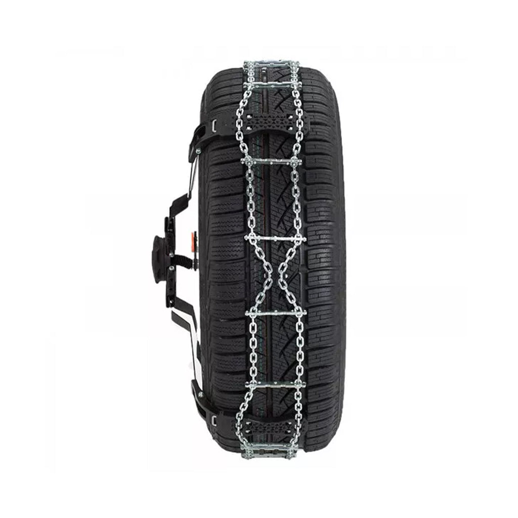 De RUD Centrax onderscheidt zich van andere loopvlakkettingen door zijn innovatieve draaiknop-systeem, waarmee de ketting eenvoudig kan worden aangespannen. Dit maakt het mogelijk om de ketting perfect op spanning te brengen zonder extra inspanning. Dankzij deze slimme technologie is de RUD Centrax niet alleen eenvoudig te monteren, maar ook uiterst betrouwbaar tijdens winterse omstandigheden. Dit, in combinatie met het handige montagesysteem zonder ruimte achter het wiel, maakt de RUD Centrax een uitstekende keuze voor automobilisten die op zoek zijn naar gebruiksgemak en topprestaties in de sneeuw.