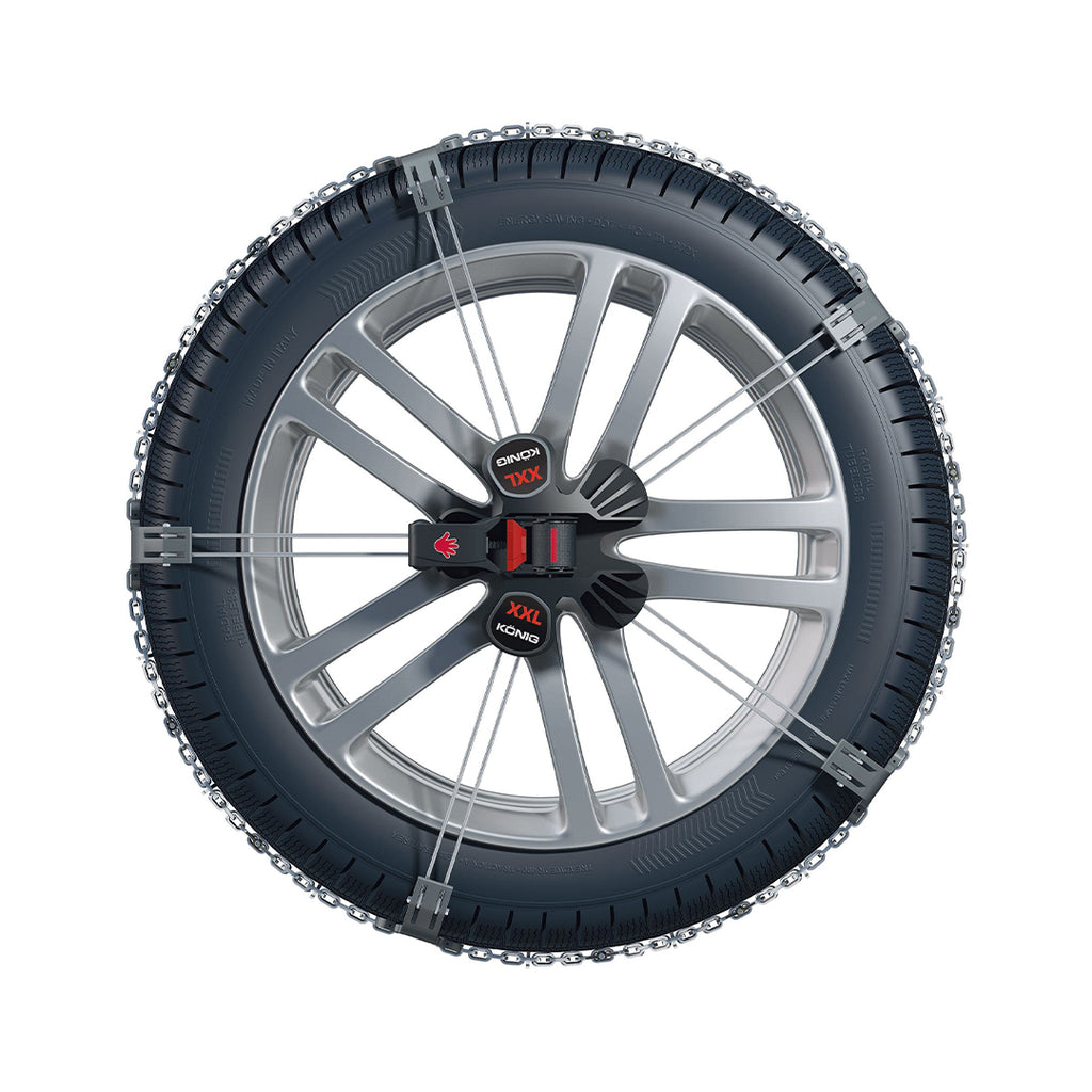 De König K-Summit XXL is de loopvlakketting voor SUV's en andere zware voertuigen. Het grote verschil tussen de reguliere K-Summit en de XXL-versie, is dat de K-Summit XXL ontwikkeld is voor voertuigen tot een ledig gewicht van 3.500kg. De reguliere K-Summit is geschikt tot een gewicht van 2.000kg. De K-Summit wordt gemonteerd op de orginele moer/bout van het wiel. Het innovatief ratelsysteem zorgt ervoor dat de montage zeer eenvoudig is en met een kleine voormotage snel bevestigbaar. Spanveren van de K-Summit XXL verlagen de dynamische krachten en zorgen voor een perfecte pasvorm op de band. Deze loopvlakketting heeft alle ketting op het loopvlak van de band en is aan de achterzijde en voorkant kettingvrij. Hierdoor is deze ketting te gebruiken bij voertuigen die geen traditionele sneeuwketting mogen plaatsen, weinig ruimte in de wielkast en/of overhangende schokbrekers. De K-Summit XXL bestaat afwisselend uit gegoten kunstof platen met hardmetalen verbindingsbouten en een gelegeerde stalen ketting.
