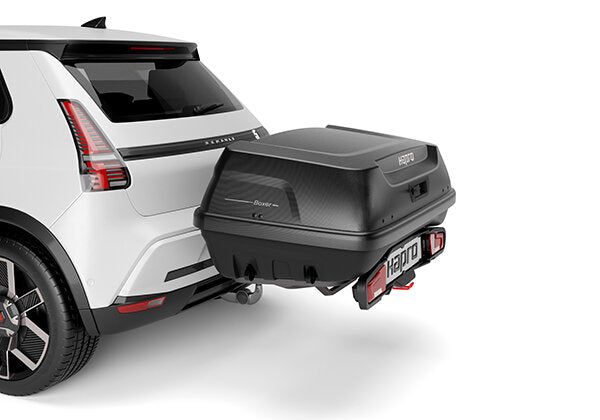 Met het Premium-Grip bevestigingssysteem monteer je de Boxer eenvoudig en snel op de trekhaak. De stevige constructie biedt ruimte aan tot 60 kg aan bagage en blijft stabiel tijdens elke rit. Het slimme kantelmechanisme met een hoek van 76° zorgt ervoor dat je ook met een koffer gemonteerd op het onderstel moeiteloos toegang hebt tot de kofferbak van je auto. De koffer is uitgerust met mistlampen, achteruitrijlichten en kentekenverlichting, zodat je goed zichtbaar bent voor andere weggebruikers. Dankzij de 13-polige stekkeraansluiting worden deze functies automatisch geactiveerd wanneer je het onderstel aansluit op je auto. Heb je een auto met een 7-polige aansluiting? Geen probleem: een adapter wordt meegeleverd, zodat je het onderstel eenvoudig kunt aansluiten.