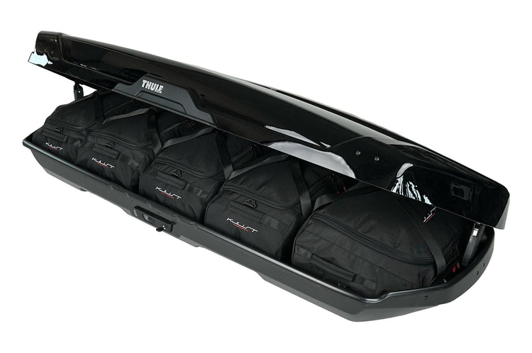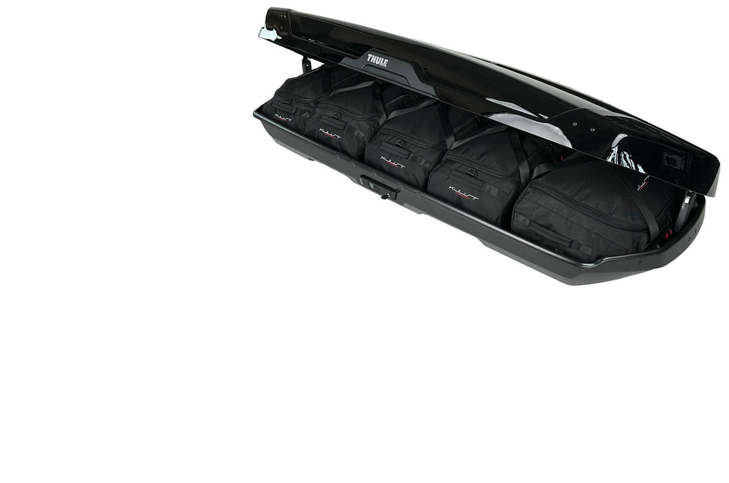 Maximaliseer de ruimte van je Thule Motion Xt Alpine met de op maat gemaakte KJUST tassenset. De vijf tassen benutten de ruimte optimaal, zorgen voor efficiënte verpakking en veilig transport. Met deze tassenset hoef je je nooit meer zorgen te maken om de dakkoffer.