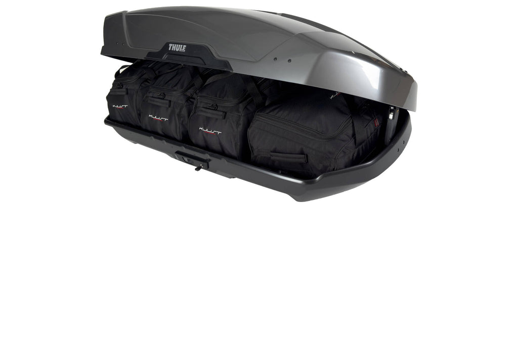 Maximaliseer de ruimte van je Thule Motion Xt M met de op maat gemaakte KJUST tassenset. De vier tassen benutten de ruimte optimaal, zorgen voor efficiënte verpakking en veilig transport. Met deze tassenset hoef je je nooit meer zorgen te maken om de dakkoffer.