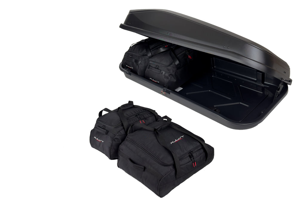 Maximaliseer de ruimte van je Junior Easy 430 met de op maat gemaakte KJUST tassenset. De vier tassen benutten de ruimte optimaal, zorgen voor efficiënte verpakking en veilig transport. Met deze tassenset hoef je je nooit meer zorgen te maken om de dakkoffer.