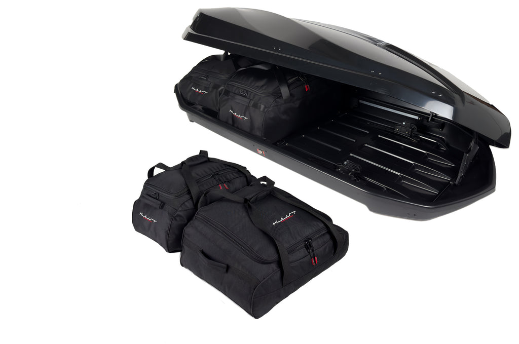 Maximaliseer de ruimte van je Junior Strike 480 met de op maat gemaakte KJUST tassenset. De vier tassen benutten de ruimte optimaal, zorgen voor efficiënte verpakking en veilig transport. Met deze tassenset hoef je je nooit meer zorgen te maken om de dakkoffer.